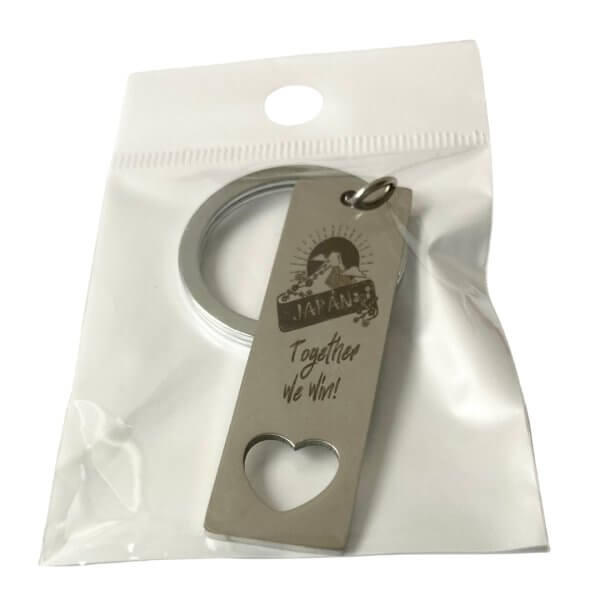 Japanese souvenir gift keyholder embossed with the Rising Sun, Mt. Fuji, Japan, and the famous slogan, “Together We Win!” 1 Pack | 10 Pieces. Whether you are looking for a decorative accent for your home, or just need a place to keep your keys, this key holder is going to do the job right. The thin, rounded, yet very durable key holder will accommodate your house keys and car keys.
